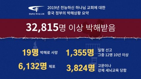 금일(31일) 전능하신 하나님 교회는 중국 정부 박해 관련 2019년 연례 보고서를 발표합니다. 이 보고서는 지난 일 년간 6,132명 체포, 1,355명 실형 선고, 19명을 사망에 이르게 한 중공 정부가 본 교회에 대해 지속적으로 자행한...